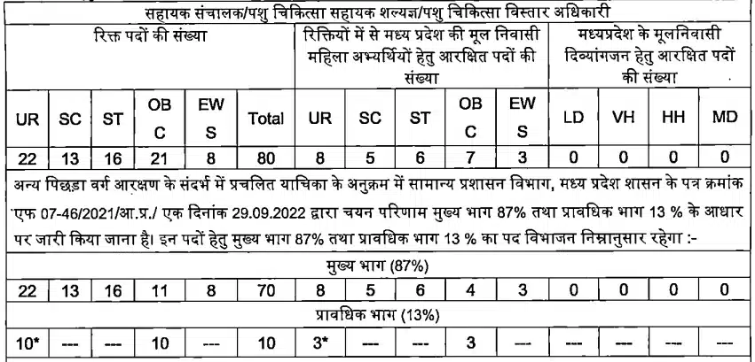 As per the notification released on 10 March 2026, a total of 80 vacancies will be filled through this recruitment drive. Candidates who hold a Bachelor’s degree in Veterinary Science (B.V.Sc. & A.H.) and are registered with the M.P. State Veterinary Council can apply for these posts.